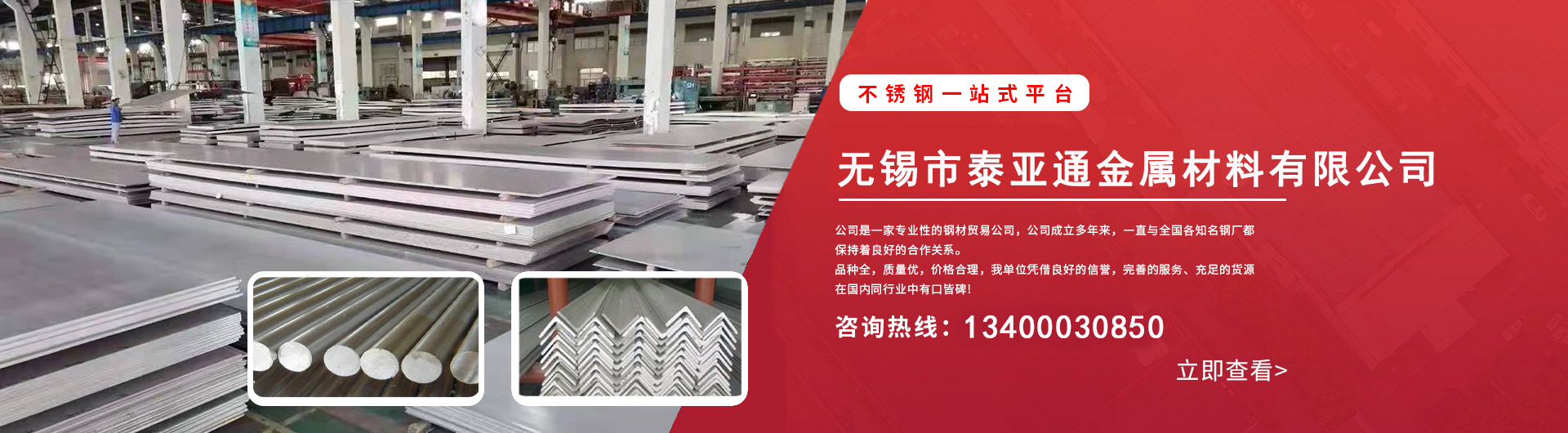 無錫市泰亞通金屬材料有限公司位于國內最大不銹鋼市場無錫東方鋼材城,是一家集生產、加工、倉儲、貿易、配送為一體的綜合型服務企業。本公司先后成為山西太鋼、張家港浦項、酒泉鋼鐵、寧波寶新、東方特鋼、甬金集團、宏旺集團等國內大型鋼廠的一級代理;生產各種材質無縫管、焊管。定做非標管材、管件、型材等。承接激光切割、剪板折彎、壓花拉絲等加工業務。全程把控材料和加工質量,全面滿足客戶個性化需求。      產品應用于石油、化工、化學化纖、冶煉、醫藥機械、造紙、保溫制冷、機械設備、食品、電力、水利、建筑、航天航空、海底工......